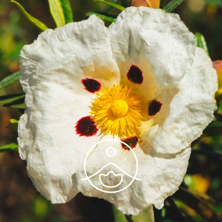 岩玫瑰的香氣分子並不在花朵,而是在枝葉分泌出來的汁液,用來防止水分散失。沒有玫瑰甜美的香氣,反而像是煙燻烏梅汁的味道。