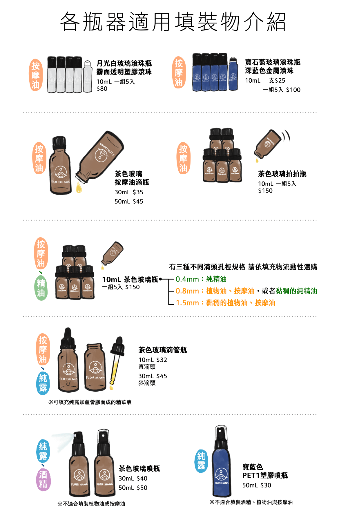 填充純露前,請先用75%酒精潤洗瓶身,倒掉酒精後再加入一些純露,消除可能殘留的酒精味。